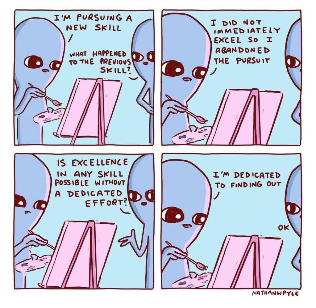 One can get gain expertise at something they love, or just about explore everything they see. I’m taking the Jill of all trades route, as always. Thanks Strange Comics for capturing my thought process precisely – glad to know I’m not alone.
