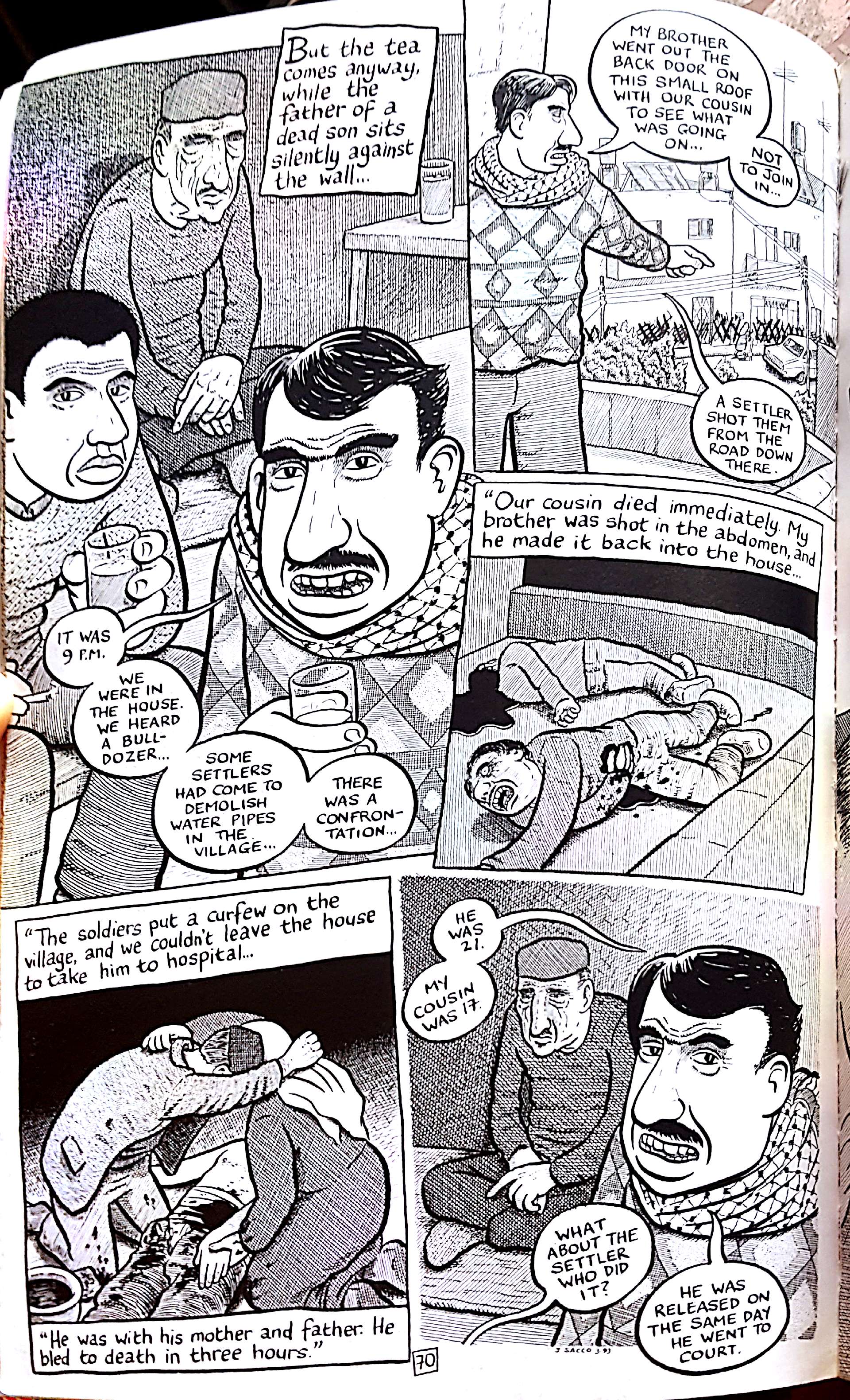 Sometimes, the images are irrelevant to the current topics of dense, scientific explanations – this left me infuriated a couple of times. Here is a page from early in the book where the author sets out to explain some pretty complicated genomic science, how mtDNA and Y-chromosomes are passed along generations, and how they have been helpful in our current understanding of history alongside archeological evidence. Alongside this complexity, we get some fairly irrelevant cell diagrams: the connect is ‘biology’, I guess?